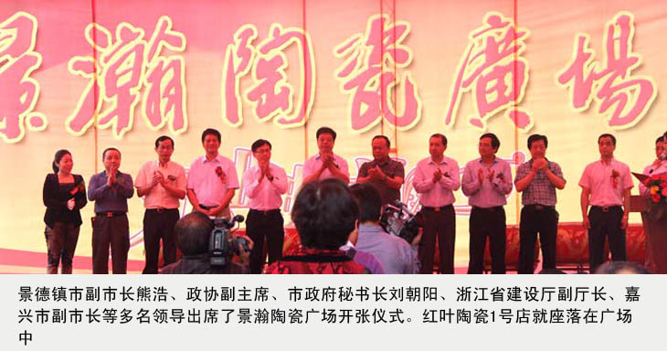 2012年9月22日,景瀚陶瓷廣場(chǎng)開(kāi)業(yè)典禮盛大召開(kāi)。當(dāng)天,景德鎮(zhèn)市副市長(zhǎng)熊皓、景德鎮(zhèn)市政協(xié)副主席、市政府秘書(shū)長(zhǎng)劉朝陽(yáng),浙江省建設(shè)廳副廳長(zhǎng)樊劍平、浙江省嘉興市副市長(zhǎng)張仁貴出席了本次開(kāi)業(yè)典禮?! ?nbsp;