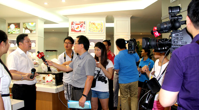 7月7日上午,由中央電視臺、光明日報、江西日報、江西電視臺、江西人民廣播電臺等20多家中央、省級媒體組成的記者采訪團專程來景,集中采訪報道我市陶瓷文化及產業(yè)發(fā)展情況。公司黨委書記、董事長王耀全程陪同采訪。