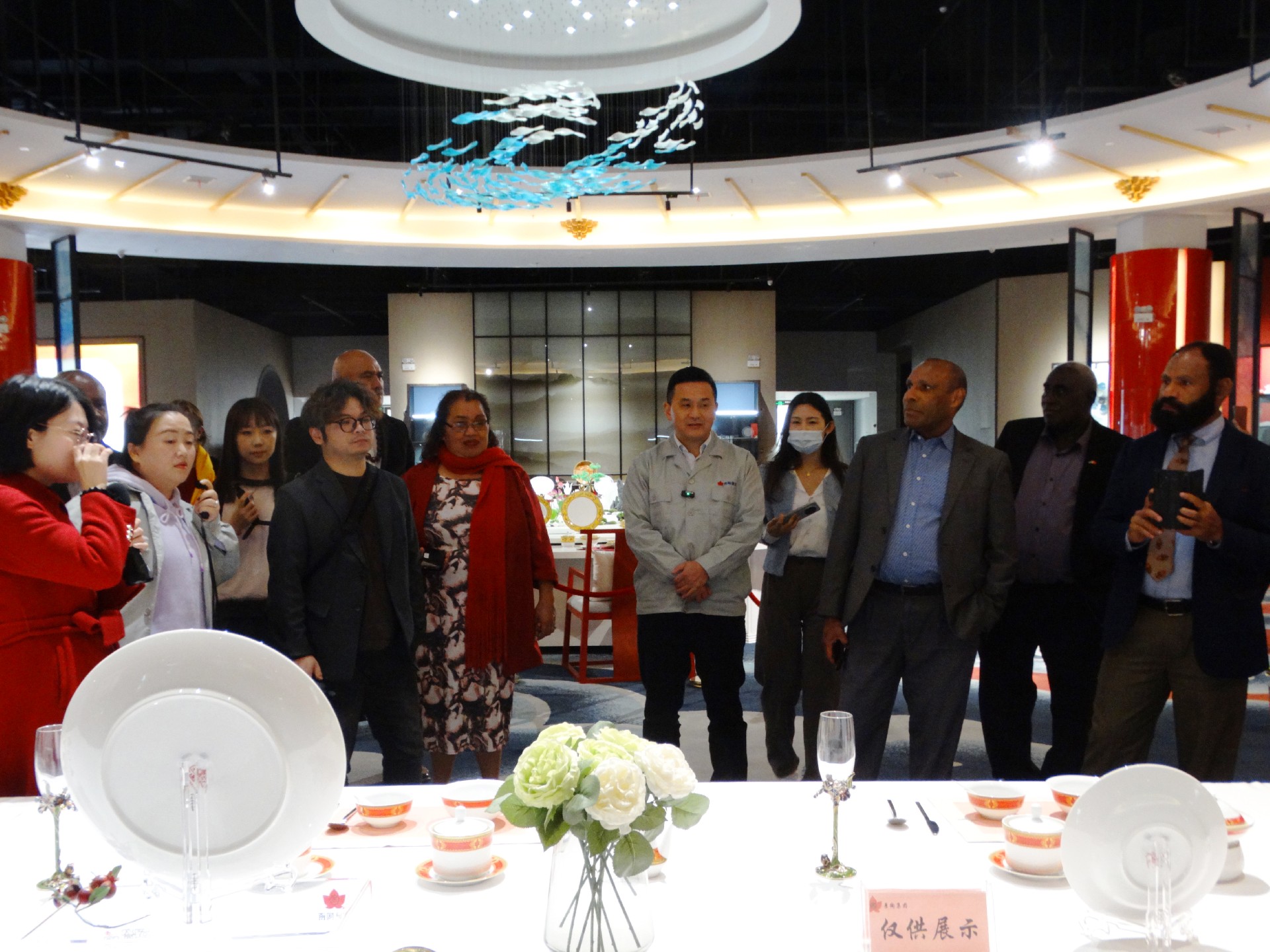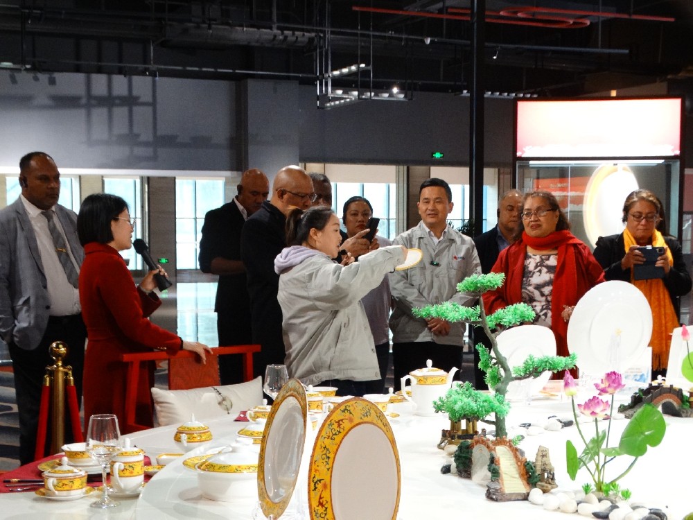 11月24日下午,太平洋島國議員研討班一行到景陶集團考察。省人大常委會副主任胡世忠,省人大常委會秘書長、辦公廳主任楊文英,省人大常委會外僑民宗工委主任韓軍,省人大社會委副主任委員趙慧,省人大常委會辦公廳副主任溫雪松陪同。景陶集團黨委書記、董事長鄧景揚陪同接待。