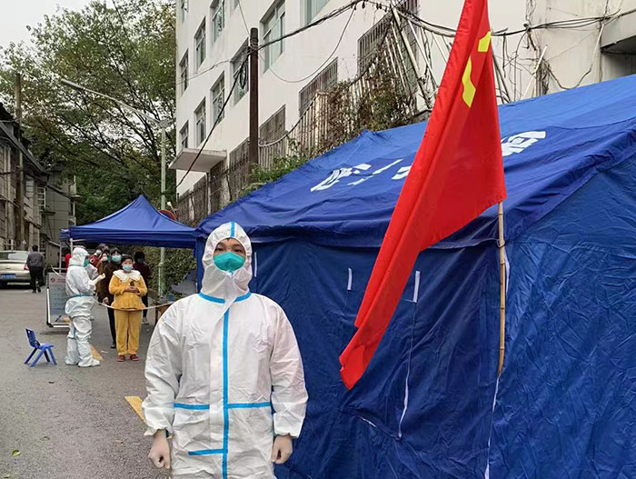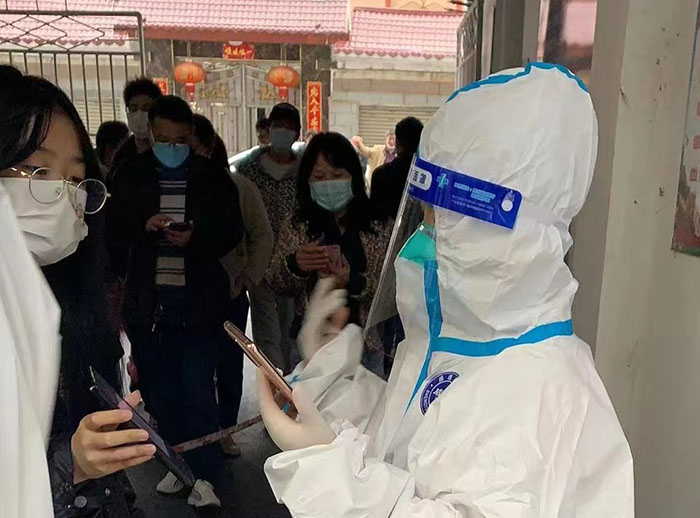 社區(qū)“雙報(bào)到”,抗疫顯擔(dān)當(dāng)。疫情來襲,黨員穿上“大白”防護(hù)服、做好秩序維護(hù)、發(fā)放健康檢測表、信息錄入、政策宣傳、掃碼查驗(yàn)、上門進(jìn)行采集核酸……。在各管控小區(qū),黨員志愿者們的身影,一直在為小區(qū)居民們辛苦地付出著?!拔覀兌际切^(qū)業(yè)主,又都黨員志愿者,在這種特殊時(shí)刻更要挺身而出,體現(xiàn)作為黨員的本分,在危難時(shí)刻顯擔(dān)當(dāng)。根據(jù)防疫工作安排,每天的工作時(shí)長都不固定,但我們每天都從半夜工作到凌晨。我們社區(qū)大家的配合度都很高,整個(gè)小區(qū)情況比較平穩(wěn),我們覺得能夠在疫情防控工作貢獻(xiàn)一些力量感到很開心。”危永清說道。